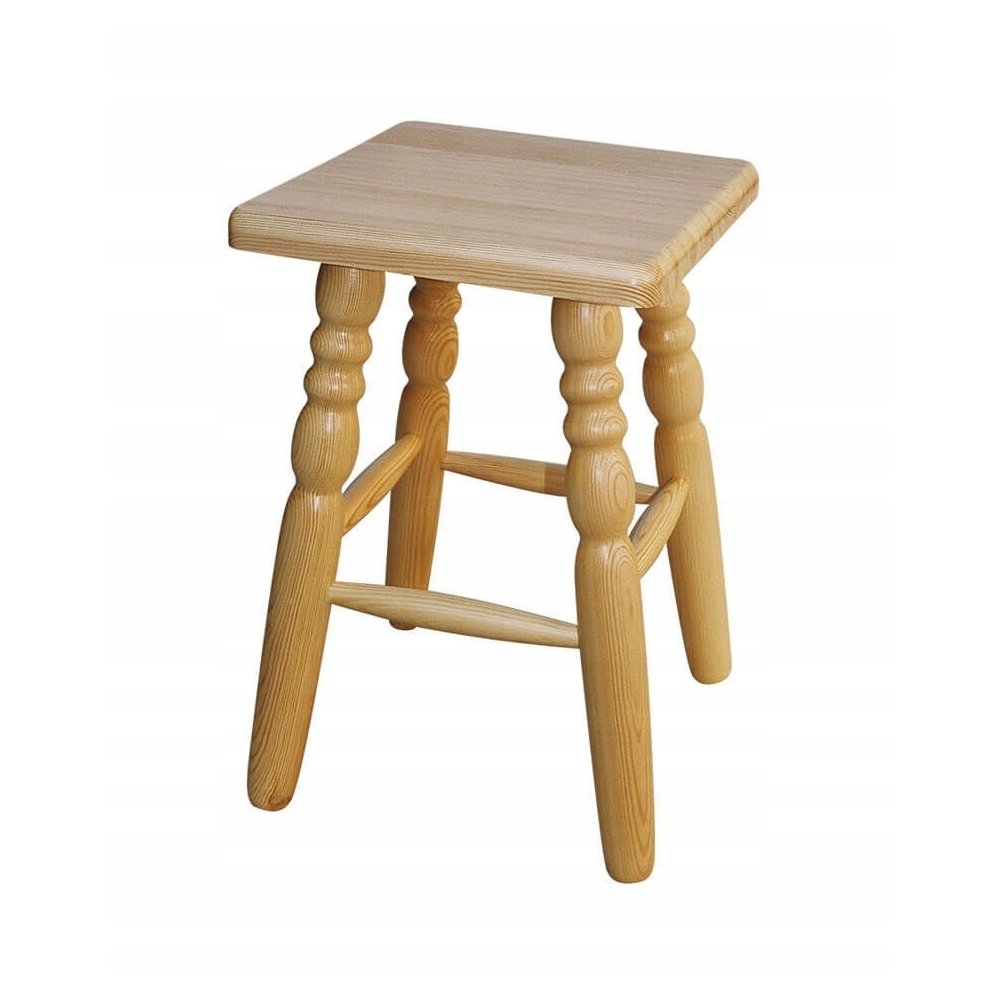 Praktyczny i funkcjonalny taboret / stołek sosnowy kwadratowy noga toczona
