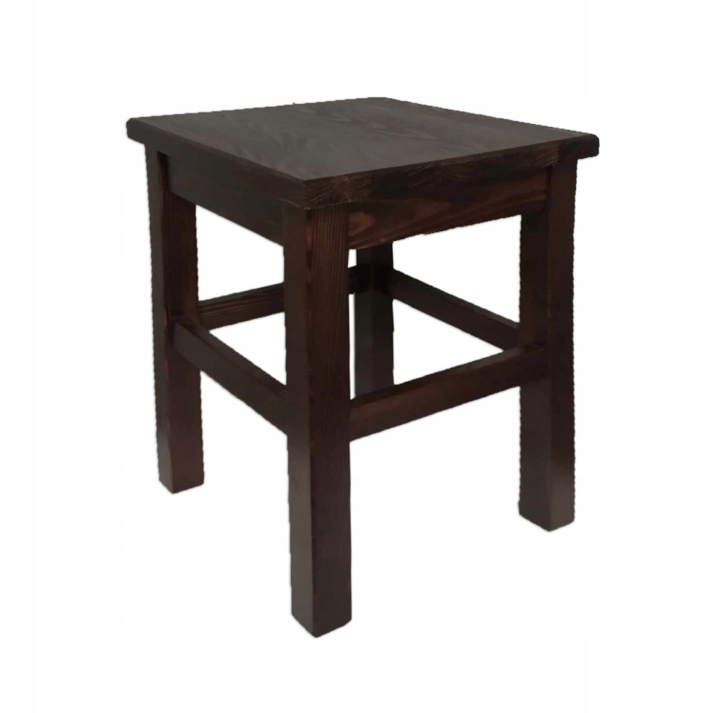 Praktyczny i funkcjonalny taboret / stołek sosnowy kwadratowy kol. orzech