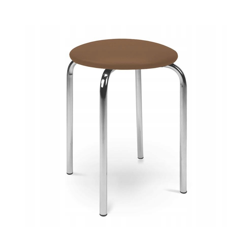Taboret tapicerowany CHICO ekoskóra chrom jasny brąz